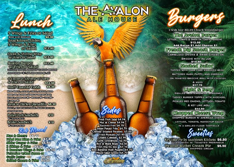 10x14 avalon sheet menu