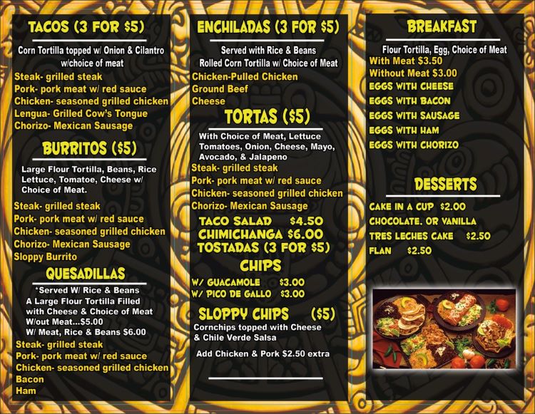 10x14 menu outside