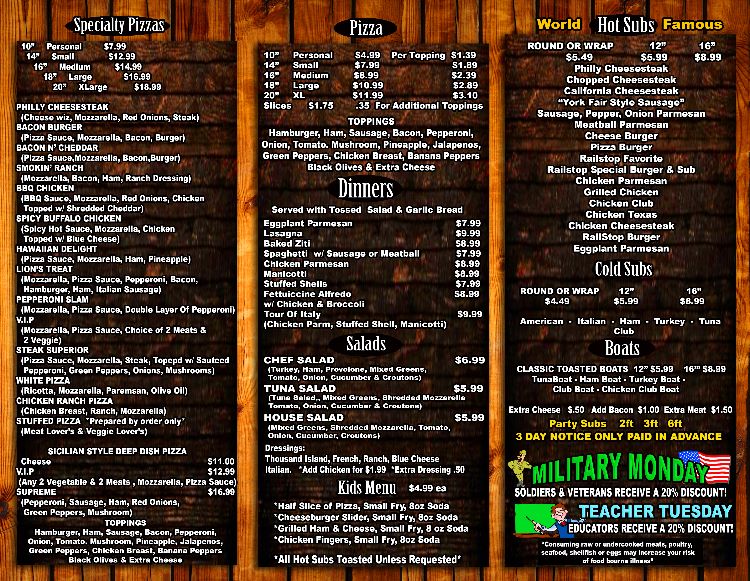 Rays dinner menu page 2